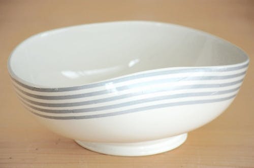 涼しげなグレーのストライプやゆるやかに歪ませた形状が、スウェーデンに吹き抜けるそよ風をイメージさせてくれる爽やかで個性的な器です!