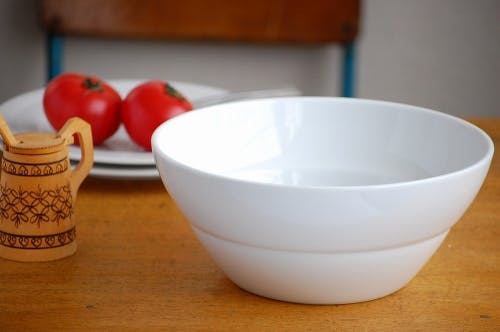 真っ白で艶っぽいラージボウルに、真っ赤なリンゴや洋ナシ、オレンジなどが居心地よさそうにおさまっている姿をついつい想像してしまいます。