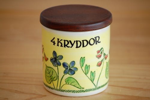 スウェーデン、JIE釜の木蓋付きスパイスポット(4つのハーブ)です。