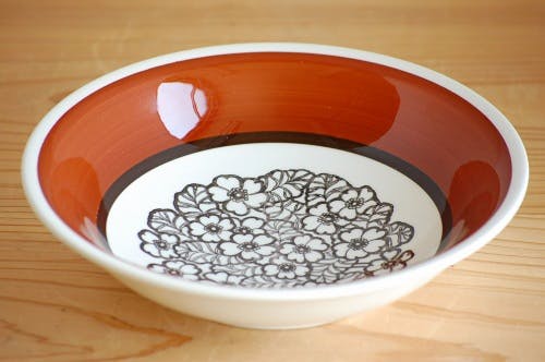 ボウルの底面に描かれたお花模様がとても愛らしく、全体的にたっぷりと光沢のある質感も魅力のひとつです。