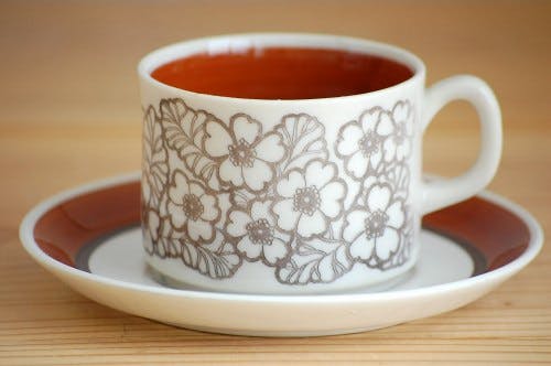 カップにぐるりと描かれたお花模様がとても愛らしく、また全体的にとろりとした光沢のある質感も人気の理由です。