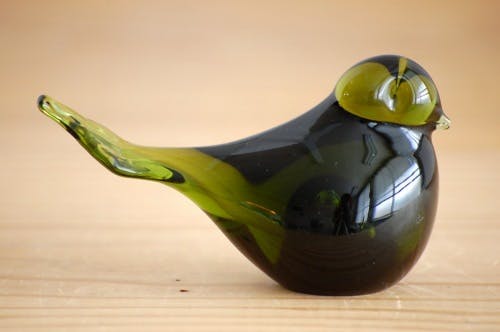 スウェーデンで見つけた、ガラスの小鳥オブジェ(グリーン)です。