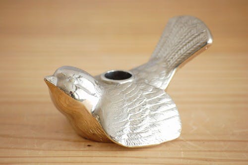 スウェーデンで見つけた金属製の小鳥キャンドルスタンドです。