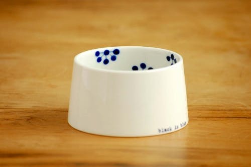 black is blueの食器の表面は目の覚めるような美しい白地に品よくanne blackのロゴが入っているだけの潔さ。ところが器の内側には藍色で手描きされたシンプルなお花模様がいっぱいに広がります。表現はちょっと変ですが、思わず身を乗り出して覗き込みたくなる、そんな食器シリーズです!
