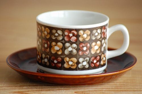 渋さ、温かさ、可愛らしさ、落ち着きといった様々な表情をあわせもっているように感じるこちらのシリーズ。日本人の私達でも、どこか親しみや懐かしさを感じられるデザインのカップ&ソーサーだと思います。