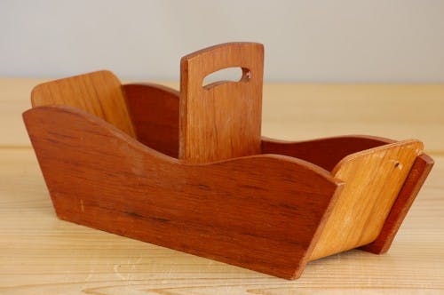スウェーデンで見つけた、持ち手付チーク材のスパイスラックです。