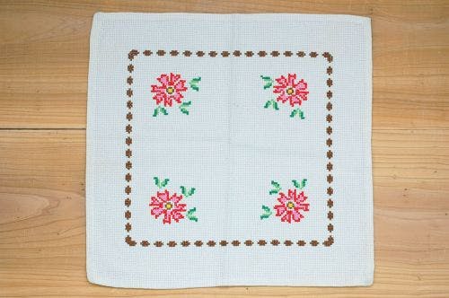 お花柄の刺繍ってそれだけで理屈なしに可愛いと思える魅力がありますね!こちらのクロスも、少女時代の気持ちを思い出させてくれるような優しい一枚です。