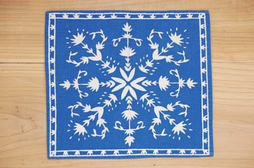 小さなサイズのクロスですので、食卓の中央などに敷いて、その上に草花を活けたガラスの花瓶などを飾っても合いそうです。