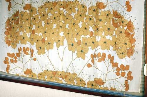 スウェーデンで見つけたヴィンテージカーテン(1枚のみ・ブラウン花模様)です。