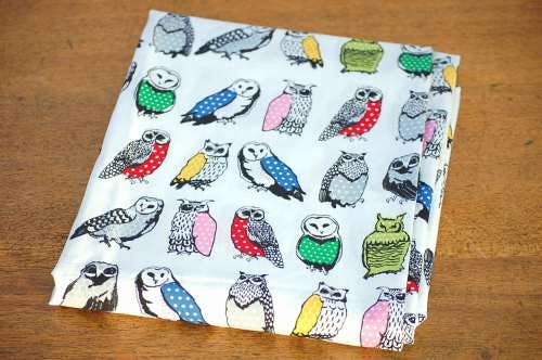 布地いっぱいに並んだふくろうの絵柄がとてもチャーミングで、遊び心たっぷりのファブリックです。ふくろうの絵柄もとてもカラフルで、あしらわれたドット模様がとてもポップな印象を与えてくれます。