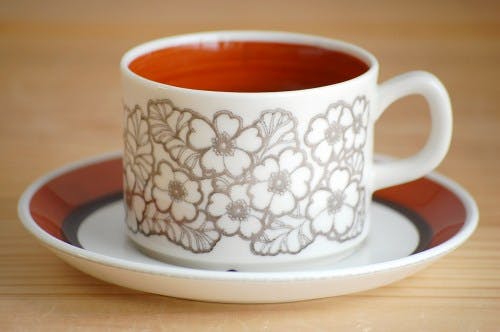 カップにぐるりと描かれたお花模様がとても愛らしく、また全体的にとろりとした光沢のある質感も人気の理由です。