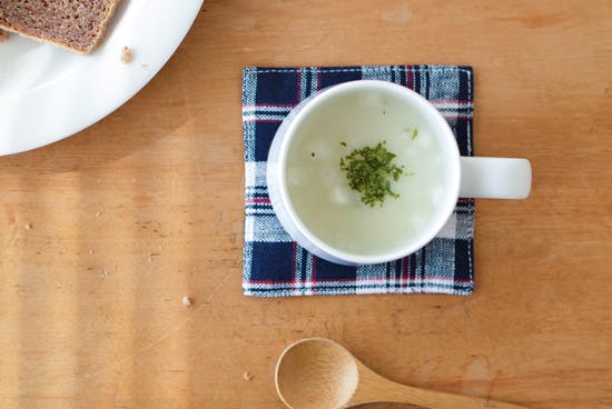 シンプルなグラスでも、コースターを敷くだけでいつもと違う雰囲気になりますね。