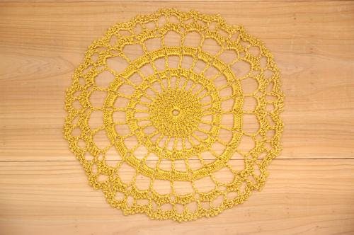スウェーデンで見つけた手編みドイリー(ゴールド)です。