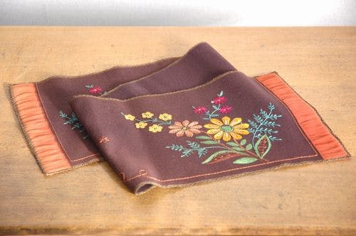 スウェーデンで見つけたフェルト素材の刺繍テーブルランナー(ブラウン花模様)です。