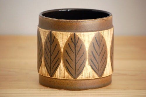スウェーデンで見つけた葉っぱ模様のキャニスター(蓋なし)です。
