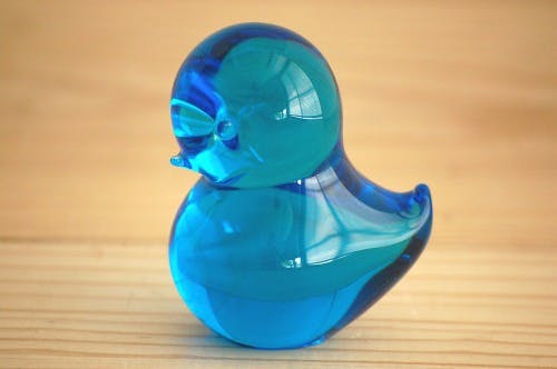 このオブジェは丸々とした体つきが愛嬌たっぷりで眺めているだけで心が和みます。また、安定感があるのでオブジェとしてだけでなく、ペーパーウェイトとしても実用的にお使いいただけます。また光にかざすと、ガラスのブルーのお色がさらに透明感を増し、淡く美しく目に映ります。ぜひ、光がよく差し込む窓辺などに飾ってあげてほしいなと思います。