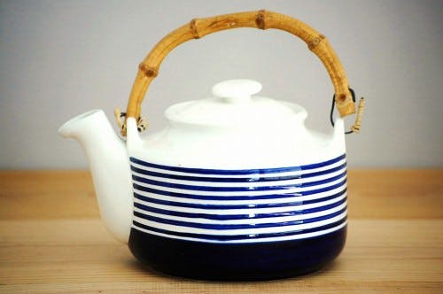 急須のようなフォルムといい、竹の持ち手の風合いといい、どこか和のテイストを感じさせるデザインですので、日本の食卓の上でもすんなりと溶け込んでくれるとお品かと思います。