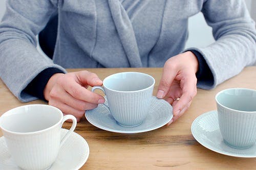Swedish graceのカラー展開はどの色も本当に清潔感に溢れ、優しくって、組み合わせ易いので、他カラーのカップ&ソーサーとコーディネートして数客をテーブルに並べても、驚くほどにマッチしてくれます。同じカラーを組み合わせることでの統一感、潔さは勿論なのですが、違うカラーと合わせることでの魅力も相当なものです。お好みや暮らしのスタイルに合わせてコーディネートを楽しんでいただければと思います。