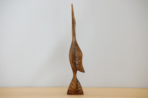 また、脚の部分や羽の部分に掘り込まれた模様にも人の手仕事の跡がたしかに感じられ、より一層味わい深いものがあります。