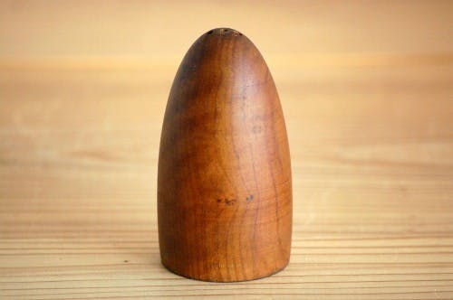 ツルンとした卵のようなフォルムとチークの木目が美しいの一言です。ちょこんとさりげなくテーブルの上に置いてみても、なんとも言えない愛嬌があります。