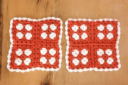 スウェーデンで見つけた手編みドイリー2枚セット(スクエア・レッド)です。