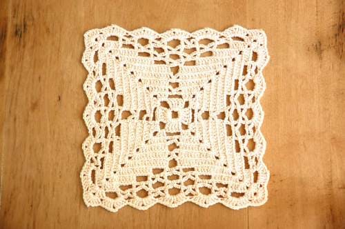 スウェーデンで見つけた手編みドイリー(スクエア・ピンクベージュ)です。