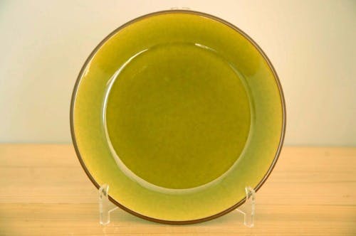 表面はグリーン、裏面はブラウンにペイントされています。その色合いや、手に持った時のどっしり感は、まるで一本の木のようだなと感じました。ロールケーキやモンブランなど秋らしいスイーツを盛り付けると相性抜群です!