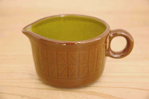 状態としては、内側に貫入が見られますが、たっぷりした艶感があるもの特有のもので、光に当てないと分からない程度です。今後ご使用いただくのには問題ないものと思います。その他チップやヒビなどは見られませんので、ヴィンテージ品としては概ね良好なコンディションになっています。