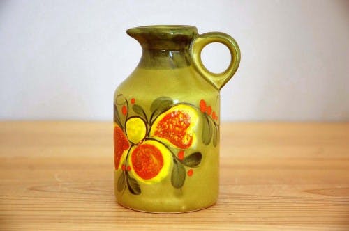 スウェーデンで見つけた、ビタミンカラーが美しい陶器の花瓶です。
