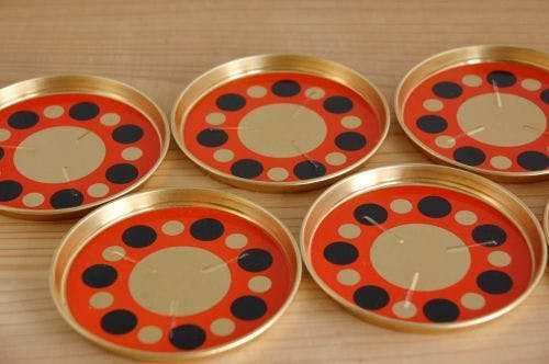 デンマークのLaurids Lonborg A/S社製、ブリキのコースター6枚セット(オレンジ)です。