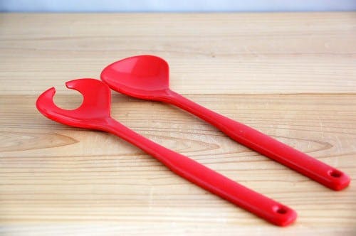 フィンランドで見つけたプラスティック製のサラダサーバー(レッド)です。