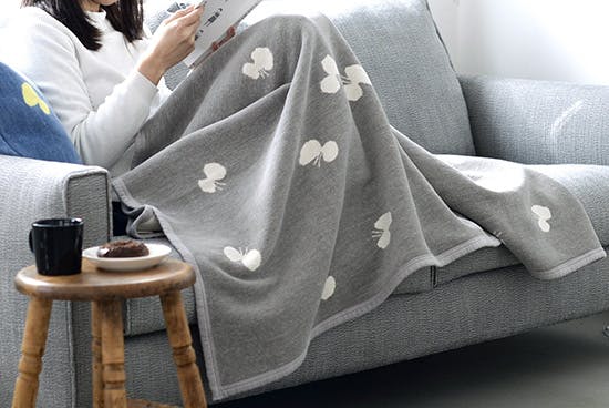 スウェーデンの伝統あるテキスタイルメーカー・KLIPPANと、私たちも大好きな日本のブランド「ミナ ペルホネン」がコラボレーションしたブランケット。