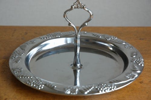 スウェーデンで見つけた持ち手付きのステンレストレーです。