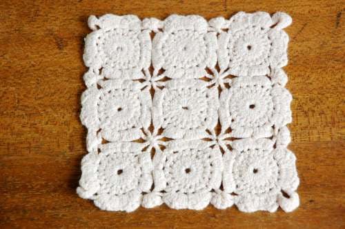 スウェーデンで見つけた手編みドイリー(スクエアS)です。