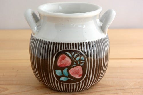 状態 :表面に施されているストライプ模様のペイントに一箇所小さな削れ跡が見られますが、ほとんど気にならない程度のものかと思います。その他チップやヒビ、貫入など見られず艶も美しいヴィンテージ品としては良好コンディションです。ポット内部も綺麗です。