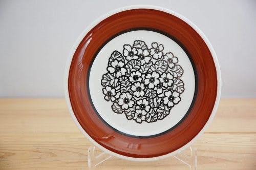 プレートいっぱいにのびのびと描かれたお花模様がとても愛らしく、全体的にたっぷりと光沢のある質感も魅力のひとつです。AGNETAシリーズのスープボウルやプレートを食卓についた人数分並べてみると、食卓にパッとお花が咲いたように一気に華やぎが生まれます。