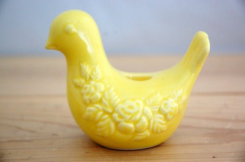 スウェーデンで見つけた小鳥のオブジェ/キャンドルスタンド(イエロー)です。