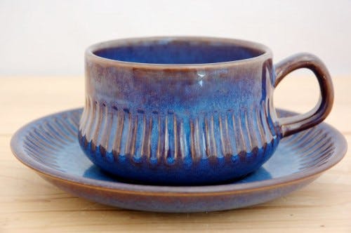 スウェーデン、ゲフル釜のKOSMOSシリーズのカップ&ソーサー(艶ありブルー)です。お陰様で当店でも大変人気の高いアイテムとなっておりますが、再び沢山のカップ&ソーサーが入荷してまいりました。