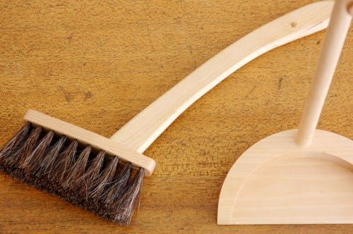 こちらは、ちりとりブラシセット(S)です。少し小さめのサイズなので、お客さんが来られる前に玄関をサッと掃除したり、お部屋の中の気になるところだけを簡単に掃除したりするのに本当に便利な道具です。