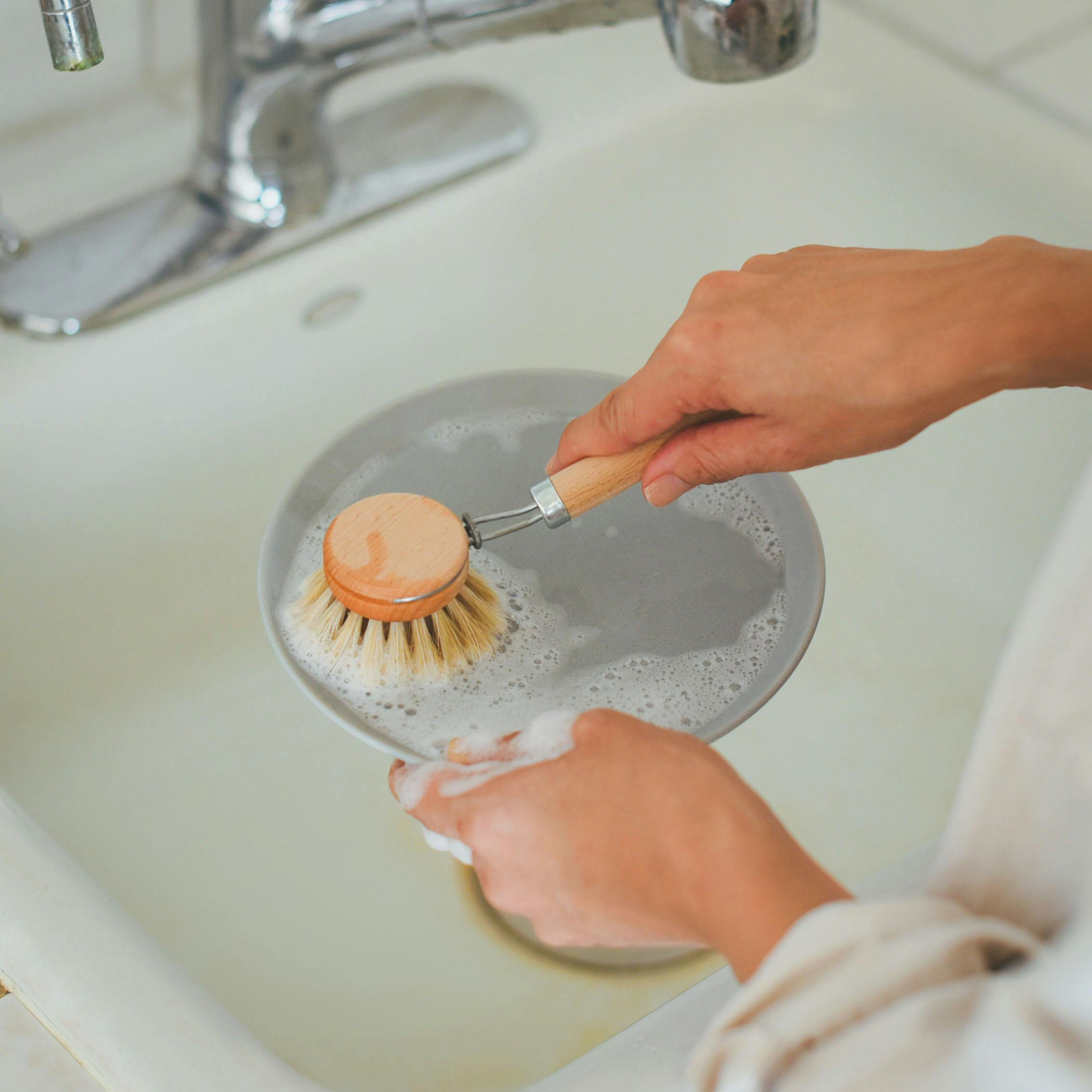 洗い物には、スポンジを使っている方が多いかも知れませんが、実は北欧では、お皿も柄のついたブラシ洗うのが一般的なんです。