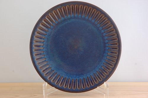 こちらは裏面の製造過程で生じる焼き固定跡の部分から生じた極小のチップがプレート縁部分に見られます。ご使用には問題ございませんがこの点を考慮した価格設定とさせていただいております。(こちらのタイプ独特のものですが、一枚一枚によって釉薬のかかり具合に違いがあります。それがまた味わい深いシリーズですが、同じ艶ありブルーのタイプでも青みが非常に強いものと、ブラウンのグラデーションのほうが強く出ているものとありますので、その点をご了承ください)