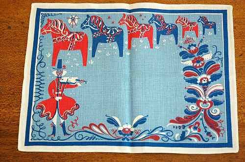 爽やかなブルーの布地にプリントされたダーラナホース。スウェーデンならではの雰囲気や伝統が感じられて愛着が湧くファブリックかと思います。額に入れて一枚の絵のように飾りたくもなる絵柄ですね!