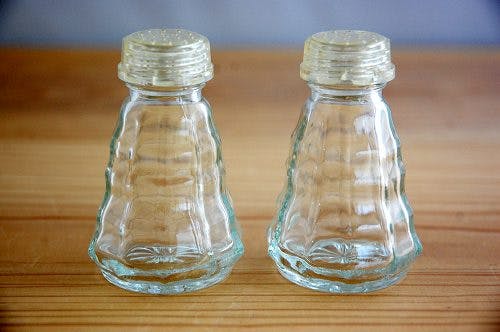 スウェーデンで見つけたガラス製の調味料入れ2個セットです。