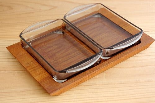 デンマーク製のチークトレー&ガラスプレートのセットです。