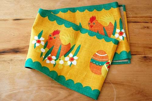 温かみのある色合いといい、鶏やイースターエッグの絵柄といい、楽しさいっぱいのテーブルランナーです。