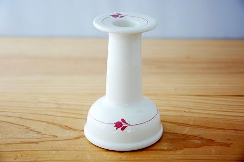 乳白色のキャンドルスタンドにピンク色の細いラインとお花模様が配されている本当にシンプルなデザインです。