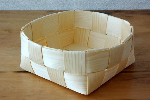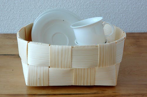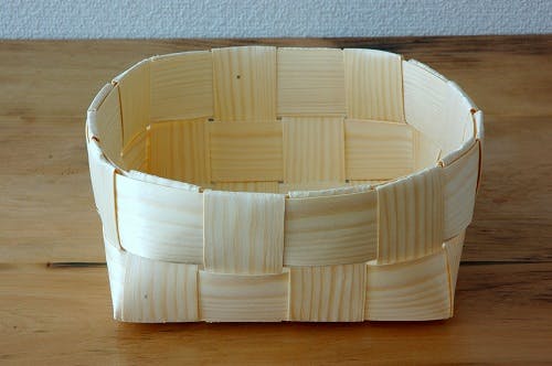 薄く削いだパイン素材を使用して編まれたかごで、手にした時の木肌の触感や香りはフィンランドの森に迷い込んだような気持ちにさせてくれます。