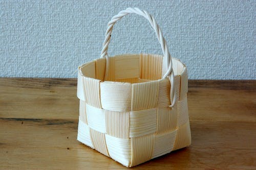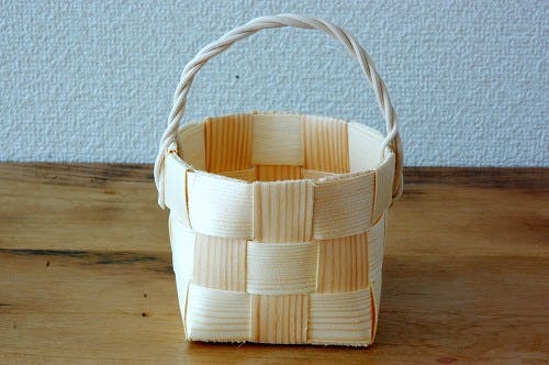 薄く削いだパイン素材を使用して編まれたかごで、手にした時の木肌の触感や香りはフィンランドの森に迷い込んだような気持ちにさせてくれます。