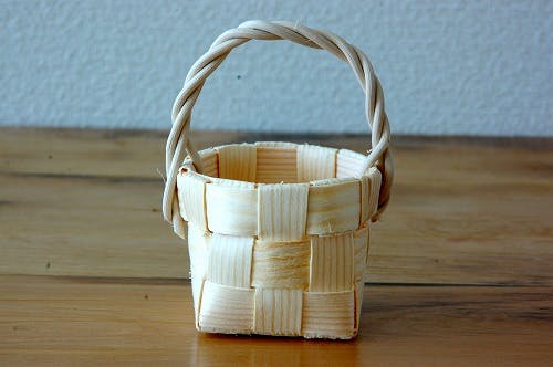 薄く削いだパイン素材を使用して編まれたかごで、手にした時の木肌の触感や香りはフィンランドの森に迷い込んだような気持ちにさせてくれます。
