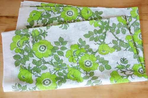 涼しげな素材と、爽やかなグリーンの色合い、のびのびと布いっぱいに広がる花模様が魅力的な一枚です。